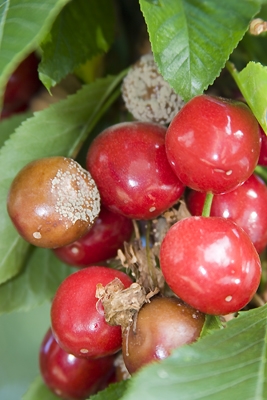This is how they look now… pretty much ruined by brown rot. My ‘Stella’ has always put out great cherries without fungicides, but this extra rain we got well into spring did in this year’s crop. C’est la vie! Here’s another great info. page from UC IPM called How to Manage Pests: Cherry.