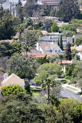A view of the neighborhood abutting the hotels and apartments on Wilshire Blvd.