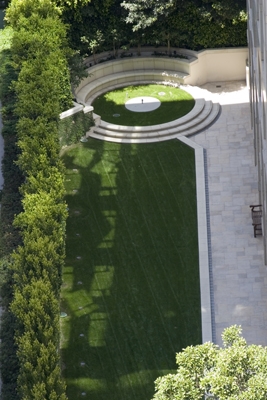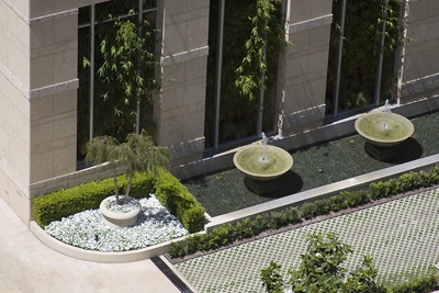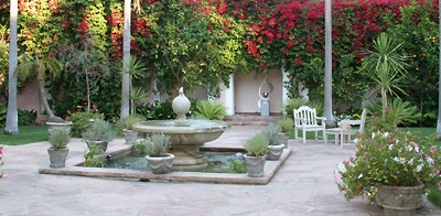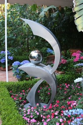 Contemporary sculpture fountains like this one are scattered around the hotel grounds. They provide an interesting contrast to the older, Mediterranean-style hotel and lush landscaping.