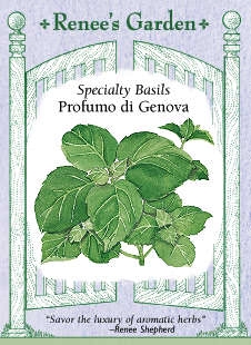Renee’s Garden calls “Profuma di Genova” the “European greengrocers’ choice” for its “bright basil flavor without minty/clove overtones, compact shape and excellent disease resistance.”