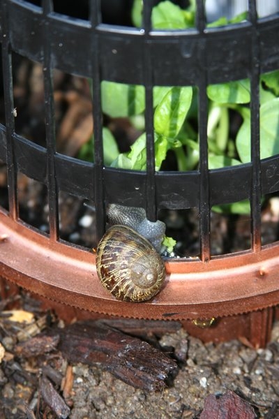 May 3rd P.S.– Remember how I was saying I have a hard time, physically and philosophically, killing snails and slugs and so prefer to block and deter them rather than poison them or smash them? Well, put me in the freak category because this GardenWeb thread makes it apparent many, many gardeners have no qualms about killing slugs and snails as they smash, smother, drown, hurl or poison with a not-so-subtle hint of glee.