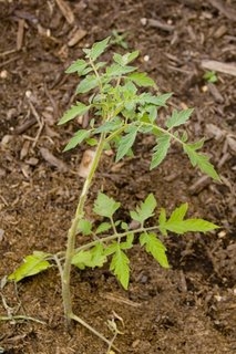 Of the nine tomato varieties I planted this spring, ‘Lemon Boy’ was slain in a brutal snail attack and yesterday, ‘Copia’ lost half its limbs when a trellis I was moving fell on it like a guillotine. Doh! I hope it recovers.