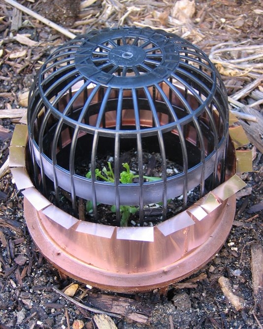 I wonder if you can buy paint with real copper in it? Then I could spray the base of the cages with something that actually repels those slimy gluttons.