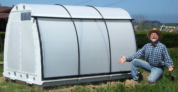 At the other end of the climate spectrum, coastal gardeners have a hard time rounding up enough heat for good fruit set, particularly when night temperatures dip below the critical 55 degree mark. I think if I lived on the coast, I would require a Veg-A-Lot Greenhouse. These affordable compact greenhouses… greenhuts?… are manufactured by Doyle Doss, a Humboldt County gardener and inventor.
