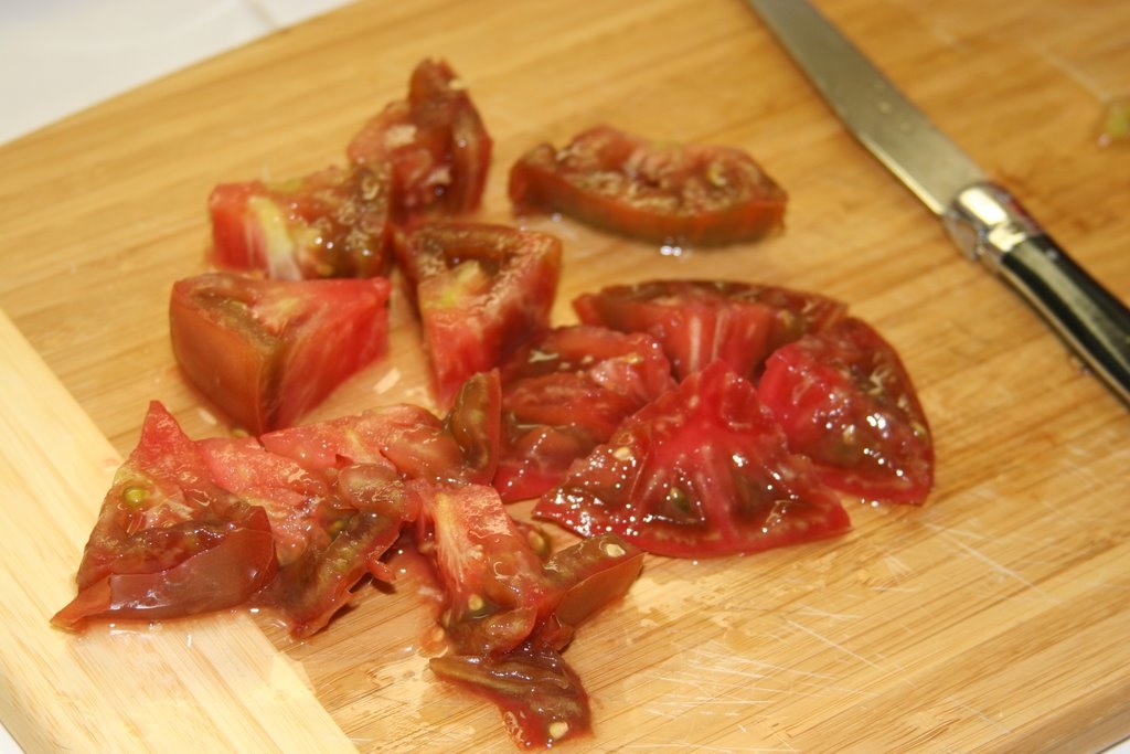 Note: Of my two main tomato beds, the one receiving earlier afternoon shade contains the largest, most prolific tomato plants– Early Girl and Costoluto Genovese. At first, I assumed they were simply more heat tolerant and robust, but it may be that they’re benefiting from earlier afternoon shading. The two plants in the sunniest bed, Copia and Black from Tula, are looking more stressed. If I have time before leaving for Mendo, I will rig up some shade cloth for them. This is quite a heat spell we’re having.