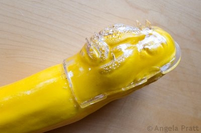 His nose is a little underdeveloped, but I had to remove him from his mold because the zip ties started stretching from pressure! There must be an art to this thing. I was able to pry the back mold off immediately, but the face wasn’t budging. I waited about an hour and then tried again. Voila!