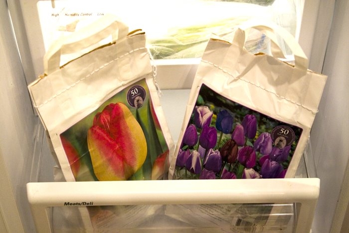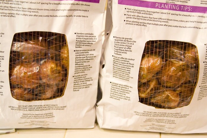 After a trip to Costco last Thursday, I now have two bags of tulips chillin’ in the meat bin of my fridge and bags of daffodils and alliums sitting on the counter, waiting to be planted. I wasn’t planning on buying bulbs that day, but the display got to me– stack upon stack, row upon row of colorfully labeled bags full of fresh, firm spring bulbs. At $8.29 a bag, they were irresistable.