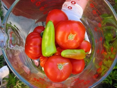 Back in July I put out a call for salsa recipes and got a few good ones from Lesli, blogging at The Peterson Farm in Georgia, Rachelle, The Accidental Gardener and Sierrabella at Sierrabella’s Garden in the California foothills. Yesterday, I finally managed to make homemade salsa. Why have I not been doing this, oh, for the last twenty years or so? So easy and delish!