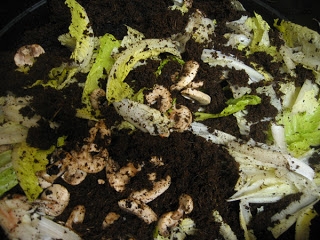 After side-dressing my tomato, pepper and basil plants with the finished compost from one layer of my Can-O-Worms, I added the coir pictured above to the now-empty layer, along with some past-their-prime veggies from the fridge. My veggie plants also got a dose of Bio-Fish and liquid Kelp fertilizer. That should give them some added vigor!