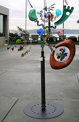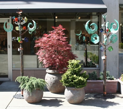 And my Monrovia-recommended plant palette? Well, it’s mostly a bunch of Japanese plants! I could never, ever, ever restrict myself to such a narrow palette. Boring. I’m a typical haphazard plant collector who brings home plants in ones and threes and fives that I fall in love with first and worry about where the hell I’m going to put them later. If you had to put a label on my garden style, I suppose you’d call it “California Eclectic”. Or “California Eccentric”. Or “California Artistic”. Or “California Mediterranean Artistic”. How about “Artistic Califoranean”? “Eclectifornia Style”? “Artistic Subtropifornia Style”? My horticulturally conservative neighbors probably call it “Dirty, Lazy Hippie”. Whatev… They’re just lucky I haven’t splurged on one of those spectacular kinetic sculptures by Andrew Carson I see every year at the San Francisco Flower & Garden Show. Man, I want one. For my front yard.