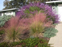 Pink Muhly, Mexican bush sage, lantana, manzanita, etc.