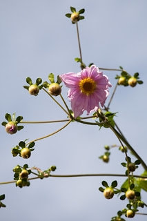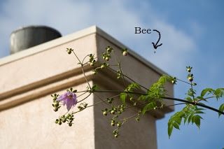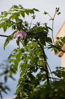 On my way back from the mailbox, I looked up in the sky and was startled to see that the first of my tree dahlia buds have opened! Alert the media!