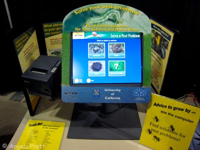 The Sacramento UC Master Gardeners also had a booth nearby. I finally got a chance to try out the UC IPM kiosk! Woo hoo! It’s super, super cool and much smaller in person than I imagined from the photo on the IPM website. It’s the perfect size for a nursery counter! I want one… though I have no nursery… rats! Speaking of rats, after a test search, the machine spit out environmentally friendly control recommendations for rats. A friend of ours in East Sac. is having a rat problem.