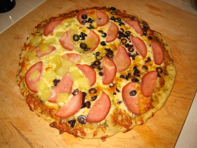 Hits: This one crisped up better than the first, probably because I transferred it to a pre-heated pizza stone after a few minutes (easier said than done). Also, pesto is just delicious on a pizza.
