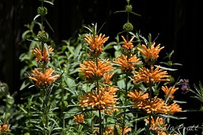 …courtesy of nature, well, and our friendly neighborhood plant hybridizers. When my daylilies, agapanthus and lilies bloom, I know summer’s here for real. The lilies have come back on their own for a few years and the agapanthus are fairly new additions. I absolutely love agapanthus and don’t care one whit that it’s common. My orange Lion’s Tail (Leonotis) is pretty fun too. You can just tell it doesn’t take itself too seriously.
