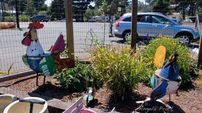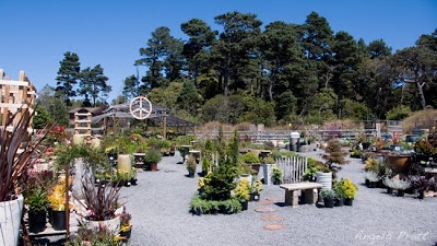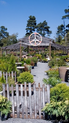 Finally… both free time and motivation bumped into each other at the same and I’m blogging more of my Mendo trip. After my second visit to the nearby Mendocino Coast Botanical Gardens, I popped into North Star Nursery. I was looking for fairy wands (none in stock), but left with a few succulents and a fun new phormium. Love the peace sign… and how great are those pillow stepping stones… and no, they wouldn’t be “so easy to make”. You go right ahead.
