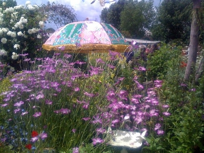 Just beyond this flowerbed is the “Bored spouses and boyfriends” table. 😉